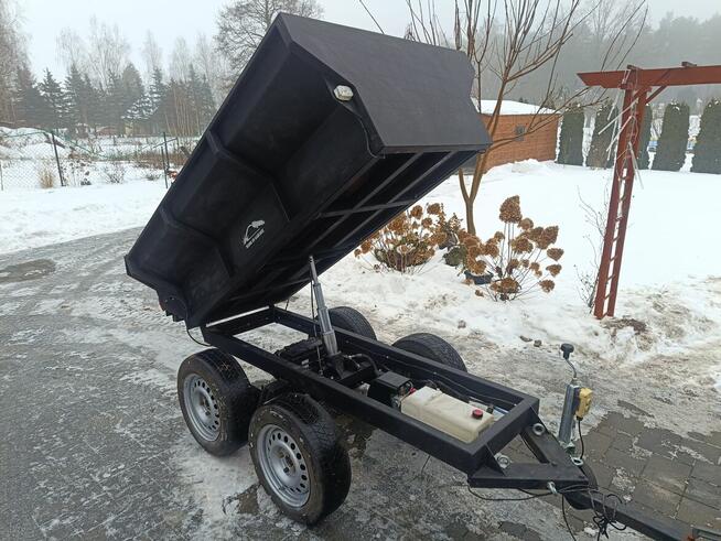 Przyczepa do quada wykonana solidnie z hydraulicznym wywrotem.Bez problemu podnosi 1500kg.Zawieszenie typu tandem na ...